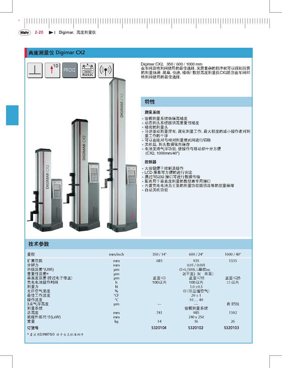 Digimar CX2數(shù)顯高度儀是在車間及檢測間使用的最佳選擇,測高儀使用,無需復雜的程序就可以得到所需的測量結果;簡單,蘇州測高儀價格,快速,測高儀工作原理,精確!數(shù)顯高度測量儀CX2是您在車間和檢測間使用的最佳選擇。